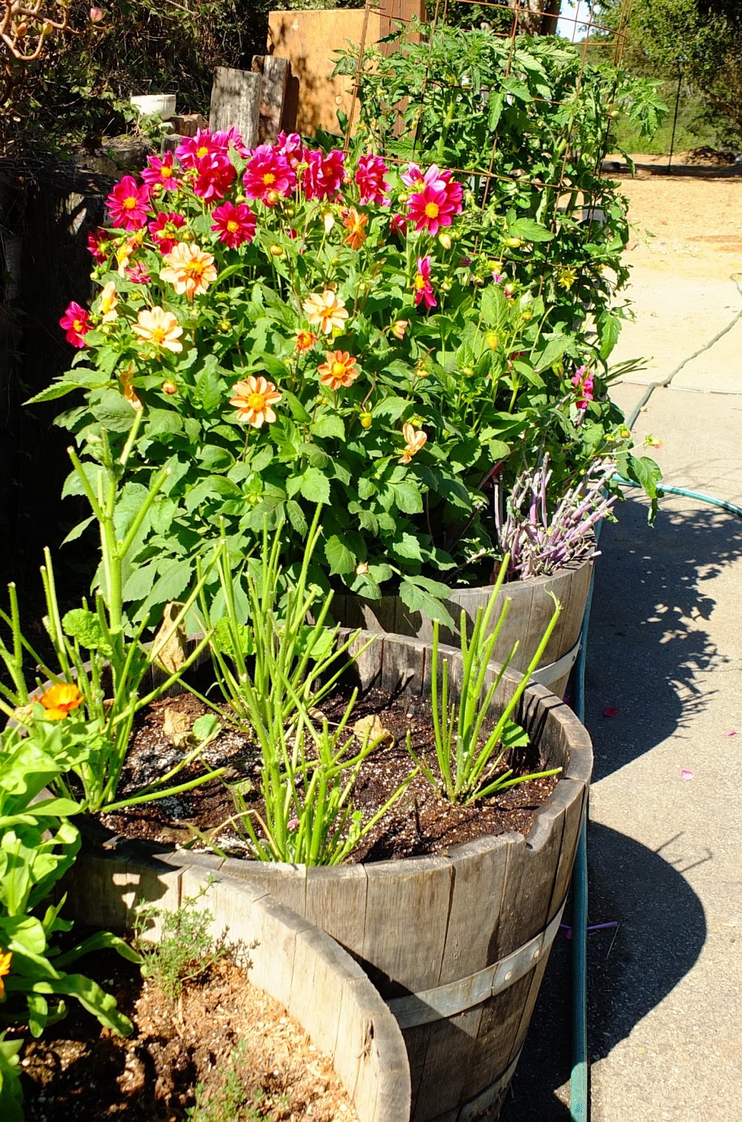 Close up of our 'raised beds' this year. The tomato plant is healthy!